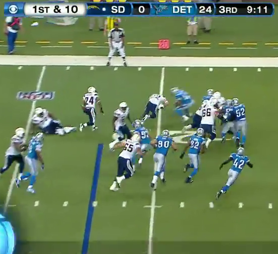 - Again, nice day run blocking by the Chargers tight ends and backs. Lots of effort…we like!